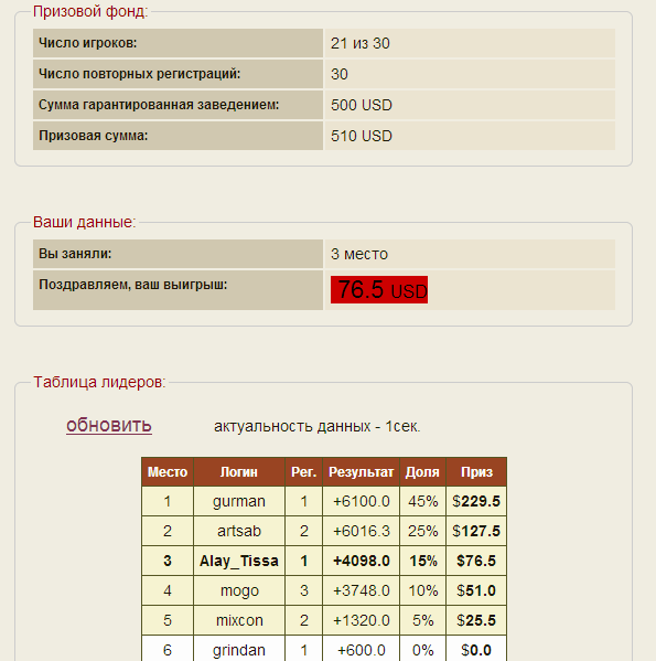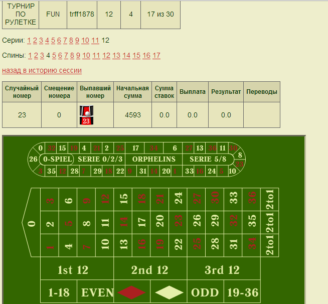 I know the final result is sixth (the chips are still carried over to play in the next tournament) I could have continued playing, but I only set aside time for roulette at night, the morning and day are for me to solve other issues. The events unfolded approximately like this: Immediately there was a decline down and min touched somewhere 300(+,-) (from the initial 1000). Pause. I had to make a decision: to split this remainder into 3-4 moves and risk jumping out with a jerk or act in my style the way I have already gotten used to getting out of the holes. But I still didn’t dare to take an increased risk. Maybe this is my careful attitude to money, regardless of fun or real. I don’t know. The goal was set - to get out. And now I understand that this is not enough. I should have pumped up my ambitions more - this is a tournament. (with prize money paid) Of course, I will show some screenshots of how the rise from 300 took place. The result, of course, is the one that is above 1000 - that's clear. Nobody cares what happens there, someone registers 2-3 times (I have 1), falls - rises ... Time is up, the results are already in history. But it doesn't matter. Now I'll upload screenshots, I have about three dozen of them in a folder (I took them for myself), after all, this tournament is my firstborn) I chose some with the narrowest betting areas, and it will be immediately clear that they are with reduced risk without claims to a breakthrough. Bets are mainly only on numbers, no dozens-columns, even sixes are rare, straights are a maximum (as reinforcement) But why there were no completes (strong ones) - that's the question. These are lucky moments (selective), but there were enough swings as well.To get into the top prize pool you need to show +4000 +6000.